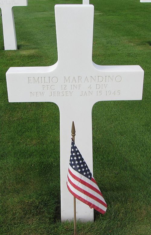 Pfc Emilio Marandino was a truck driver before he enlisted at Fort Dix, New Jersey on 23 February 1942.Source of information: Peter Schouteten, Danny van der Groen – Company’s / 4ID After Action Reports, www.abmc.gov, www.wwiimemorial.com, www.archives.gov – WWII Enlistment Record, www.ancestry.com - Headstone and Interment Record / 1940 Census, www.newspapers.com – The Daily Journal New Jersey 1 February 1945
