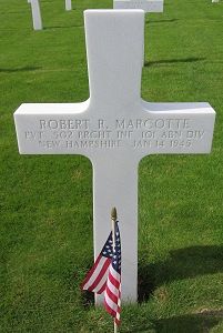 Pvt Robert R. Marcotte volunteered for the U.S. Army in Manchester, New Hampshire on 20 November 1942.Pvt Marcotte was first buried at the Temporary American Military Cemetery of Grand Failly, France.