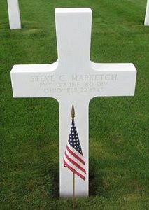 Pvt Steve C. Marketch attended high school for four years and worked in a machine shop before he enlisted in Cleveland, Ohio on 3 April 1942.Source of information: Leo Minne, www.abmc.gov, www.wwiimemorial.com, www.ancestry.com – 1930/1940 Census / U.S. Headstone and Interment Record / U.S. WWII Hospital Admission Card File / U.S. Draft Cards Young Men, www.80thdivision.com