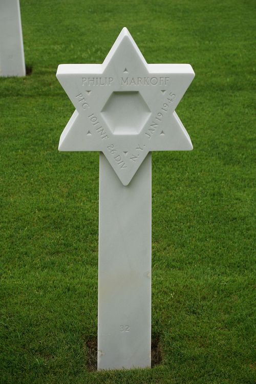 Pfc Philip Markoff was employed by the Englander Company before he enlisted.Source of information: Peter Schouteten, www.abmc.gov, www.wwiimemorial.com, www.ancestry.com - Headstone and Interment Record / U.S. WWII Draft Cards Young Men / 1930/1940 Census, www.findagrave.com, www.fold3.com – 26th Infantry Division