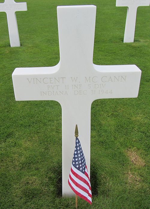 Source of information: Leo Minne, www.abmc.gov, www.wwiimemorial.com, www.archives.gov – WWII Enlistment Records, www.ancestry.com – 1940 Census / U.S. Headstone and Interment Record / Kathleen A. McCann Family Tree, www.findagrave.com, A footsoldier for Patton / Michael C. Bilder James G. Bilder, The 5th Infantry Division in the ETO
