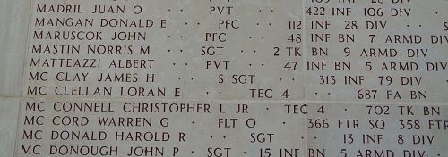 T/4 Christopher L. McConnell Jr. was employed at the Holland Furnace Company before he volunteered for the Army of the United States in Altoona, Pennsylvania on 5 December 1942. He was sent overseas on 20 August 1944.Source of information: Peter Schouteten, www.abmc.gov, www.wwiimemorial.com, www.archives.gov, www.ancestry.com - Pennsylvania Veteran Compensation Application File WWII / Chrisy Family Tree, www.tankdestroyer.net, www.findagrave.com - MAJ Jimmy Cotton / Civils203, www.newspapers.com - Altoona Tribune - 7 May 1945