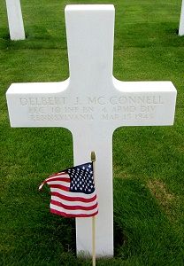 Pfc Delbert J. McConnell enlisted in Altoona, Pennsylvania on 12 April 1943.Source of information: André Koch, www.abmc.gov, www.wwiimemorial.com, www.archives.gov - WWII Enlistment Record, www.ancestry.com - Headstone and Interment Record / 1930 Census / Veteran Compensation Application Files 1950-1966, www.fold3.com - WWII Draft Registration Cards