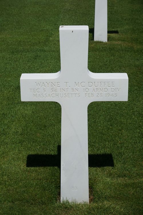 T/5 Wayne T. McDuffee Sommerville High School for four years and was a photographer before he enlisted in Boston, Massachusetts on 3 December 1942.He was killed by artillery shell fragments crushing his body.