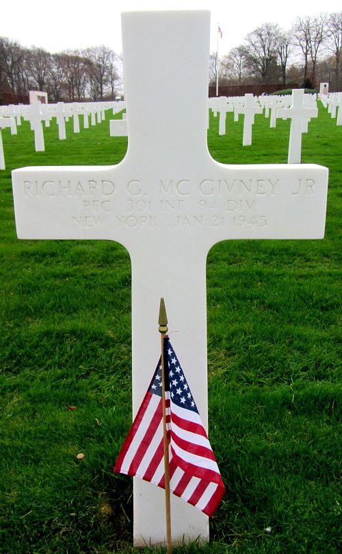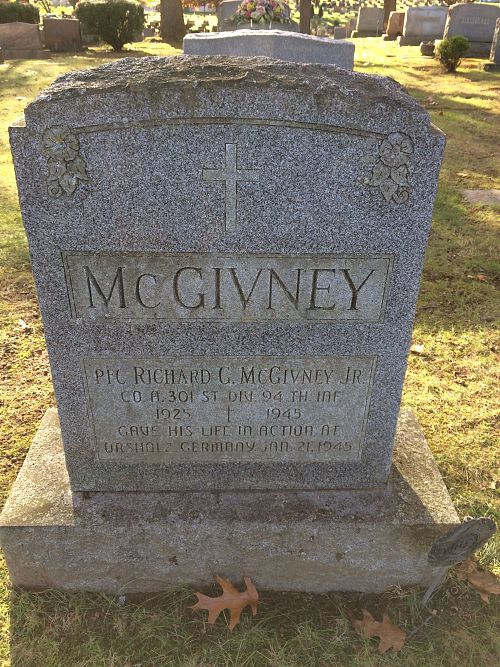 Pfc Richard G. McGivney graduated from Fulton High School before he enlisted in Syracuse, New York on 1 July 1943.He is remembered at the Saint Marys Cemetery in Fulton, Oswego County, New York.
