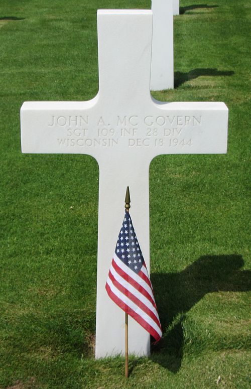 Sgt John A. McGovern attended high school for one year and was a mechanic and repairman before he joined the Regular Army in Milwaukee, Wisconsin on 12 August 1940.Source of information: Peter Schouteten, www.abmc.gov, www.wwiimemorial.com, www.archives.gov – WWII Enlistment Record, www.ancestry.com - Headstone and Interment Record / 1910 Census, www.findagrave.com