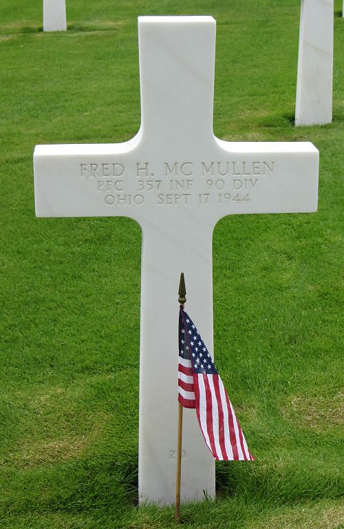 Pfc Fred H. McMullen attended high school for 4 years before he enlisted at Fort Hayes Columbus, Ohio on 27 March 1943.Source of information: Peter Schouteten, www.abmc.gov, www.wwiimemorial.com, www.archives.gov – WWII Enlistment Record, www.ancestry.com - Headstone and Interment Record / 1930/1940 Census / Ohio Birth Index