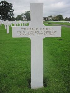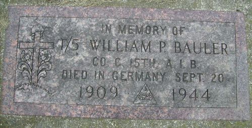 T/5 Bauler is remembered at the Saint Michaels Catholic Cemetery in Madison, Lac Qui Parle County, Minnesota.Source of information: Peter Schouteten, www.wwiimemorial.com, www.5ad.org, www.ancestry.com - Family Tree, www.findagrave.com