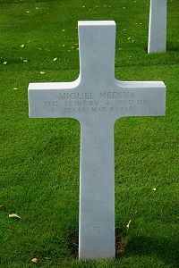 Pfc Miguel Medina enlisted at Fort Sam Houston, Texas on 21 March 1941.Source of information: André Koch, www.abmc.gov, www.wwiimemorial.com, www.archives.gov – WWII Enlistment Record, www.ancestry.com - 1930/1940 Census / Headstone and Interment Records, AAR 53rd AIB July 44 thru May 1945, www.newspapers.com - The Monitor (McAllen, Texas)