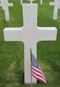 Capt Ira T. Miller graduated from Coshocton High School and attended the Ohio State University and the Wittenberg College in Springfield for one year.He enlisted at Fort Hayes, Columbus on 13 November 1941 and attended the Officers Training School at Fort Benning, Georgia after he became an instructor at Camp Forrest in Tennessee.