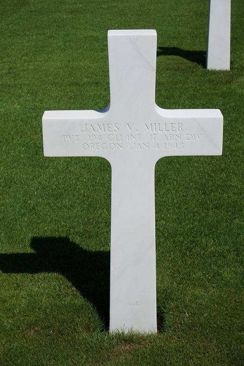 Pvt James V. Miller graduated from McKinley High School in Marshfield, Wisconsin and was employed at the Kaiser Shipyards in Portland, Oregon.He enlisted in Portland, Oregon on 20 July 1943 and was sent overseas in July 1944.