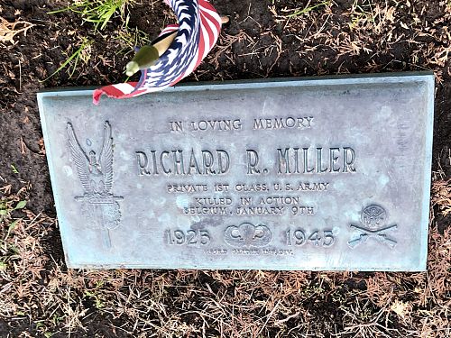 Pfc Richard R. Miller graduated from Mason City High School in 1943.He enlisted at Camp Dodge Herrold, Iowa on 15 October 1943. He was sent overseas in November 1944.