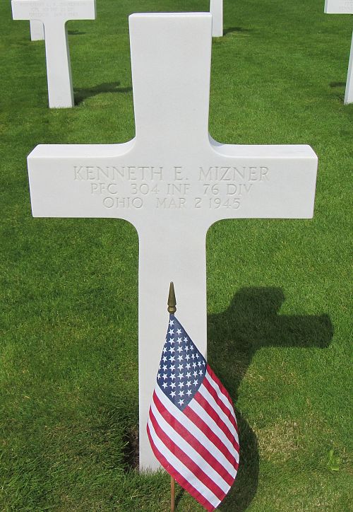 Pfc Kenneth E. Mizner attended high school for two years and was a driver before he enlisted at Fort Benjamin Harrison, Indiana on 29 April 1944.Source of information: André Koch, www.abmc.gov, www.wwiimemorial.com, www.archives.gov - WWII Enlistment Record, www.ancestry.com - Headstone and Interment Record / 1930/1940 Census / U.S. Social Security Applications and Claims Index 1936-2007, http://76thdivision.com/304/history_304th_004.html