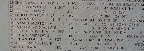 Sgt Staley E. Montgomery was a mechanic and repairman before he enlisted at Fort Bragg, North Carolina on 16 March 1942.He is remembered at the Guilford Memorial Park in Greensboro, Guilford County, North Carolina.