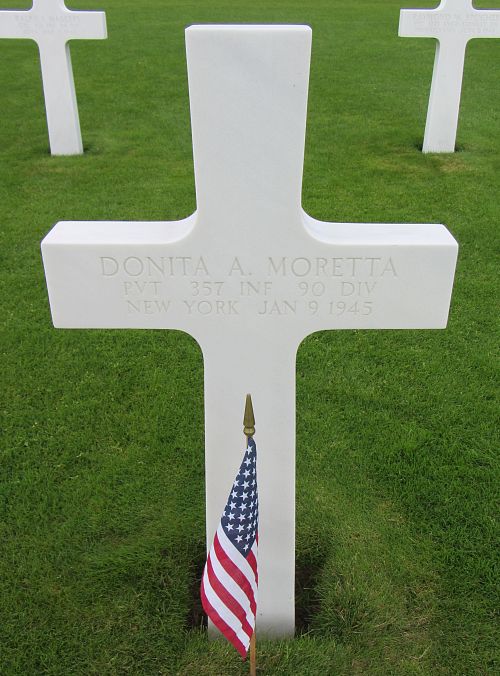 Pvt Donita A. Moretta enlisted in Utica, New York on 28 May 1943.He was slightly wounded in France on 16 June 1944 and was hospitalized in England.