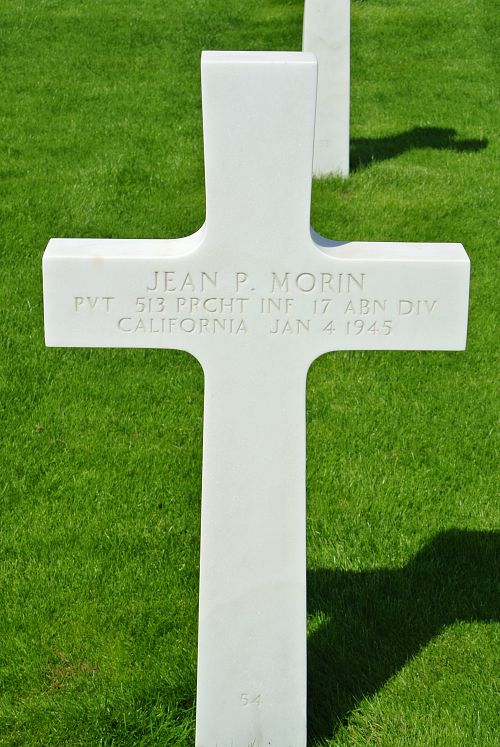 Pvt Jean P. Morin graduated from Baylor High School in 1933 and attended the University of Chattanooga for one year. He was employed at Douglas Aircraft Corporation in Los Angeles.He enlisted in Fort MacArthur San Pedro, California on 16 March 1942.