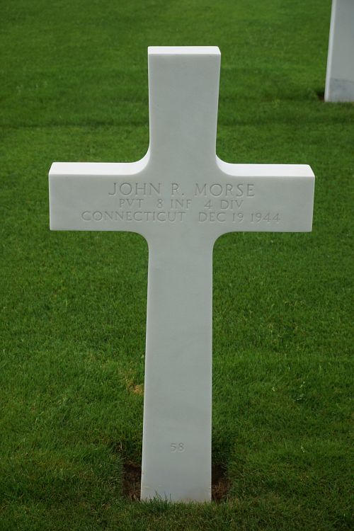 Pvt John R. Morse was a driver before he enlisted in Hartford, Connecticut on 7 August 1941.He was wounded in the arm and leg on D-Day and was hospitalized in England. This earned him his first Purple Heart.