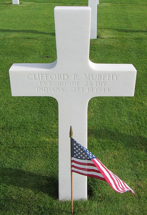 Pvt Clifford P. Murphy was a driver before he enlisted in Evansville, Indiana on 15 November 1943.Source of information: Peter Schouteten, www.abmc.gov, www.wwiimemorial.com, www.archives.gov – WWII Enlistment Record, www.ancestry.com - Headstone and Interment Record / 1930/1940 Census / U.S. WWII Draft Cards Young Men, www.findagrave.com