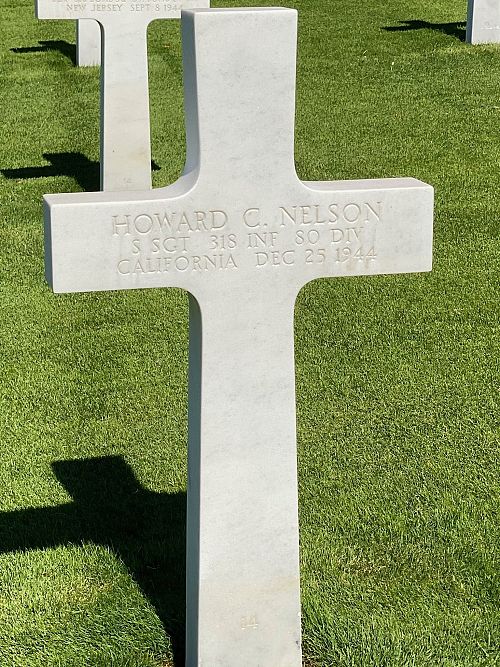 S/Sgt Howard C. Nelson graduated from Beaverhead County High School and attended Sacramento Junior College and the University of California at Berkely. He was employed by the California and Hawaiian Sugar Refinery Company.He enlisted in San Francisco, California on 13 July 1942. He was selected for the Army Specialized Training Program (A.S.T.P.) and studied at Stanford University and the University of Arizona. When the program was discontinued he was sent to Camp Adair. He was sent overseas in September 1944.