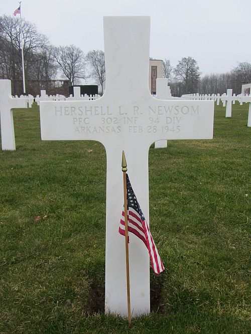 Pfc Hershell L. R. Newsom attended high school for 4 years and worked on a general farm before he enlisted in Little Rock, Arkansas on 15 August 1942.Source of information: Peter Schouteten, www.abmc.gov, www.wwiimemorial.com, www.archives.gov - WWII Enlistment Record, www.ancestry.com - Headstone and Interment Record / Sanchagraw Family Tree / U.S. WWII Draft Cards Young Men, http://www.94thinfdiv.com