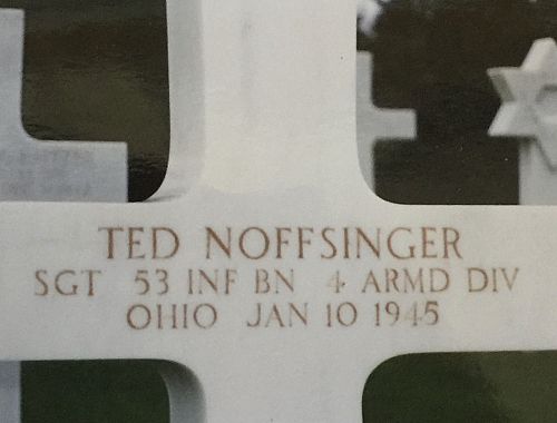 Sgt Ted Noffsinger worked for the Aeroproducts Company in Vandalia before he enlisted on 13 February 1944.He was initially buried at the Temporary American Military Cemetery of Grand Failly, France.