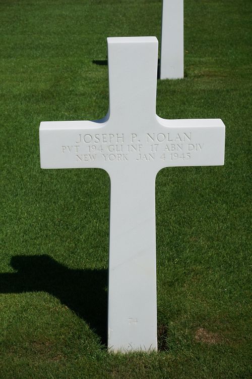 Pvt Joseph P. Nolan enlisted in New York City, New York on 12 November 1943.He attended high school for 3 years and was a bookkeeper before he enlisted.