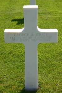 George A. Crate was a metal worker at the factory of Henry A. Dix & Sons Corporation.He enlisted in Trenton, New Jersey on 23 January 1941. After basic training, he was sent to Fort Benning, Georgia for officers training and was commissioned in 1942.