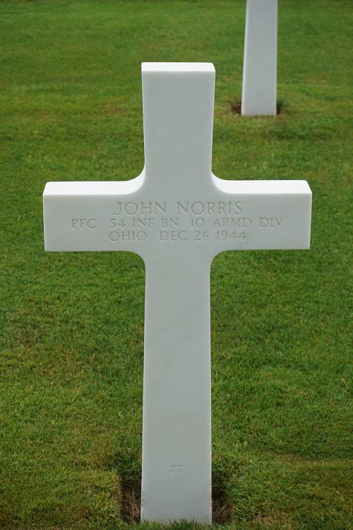 Pfc John Norris enlisted in Columbus, Ohio on 27 October 1942.He was first buried at the Temporary American Military Cemetery in Grand-Failly, France.