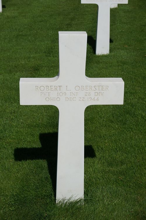 Pvt Robert L. Oberster graduated from East Canton High School and was employed by the Hercules Motors Corp.He enlisted in Cleveland, Ohio on 11 November 1943. He trained at Camp Butner, North Carolina and was sent overses in May 1944.