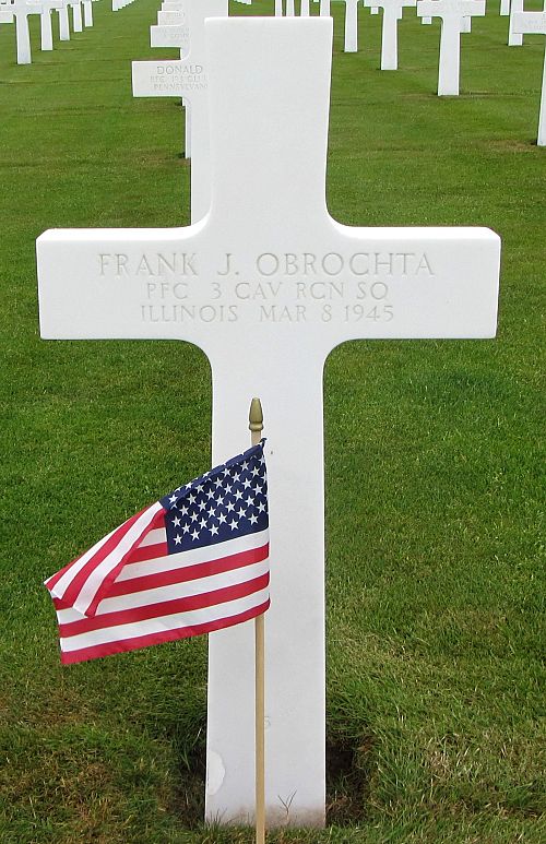 Pfc Frank J. Obrochta attended college for one year and was employed at the United States Aluminium Company before he enlisted in Huntington, West Virginia on 12 December 1942.He was killed during a heavy enemy artillery barrage.