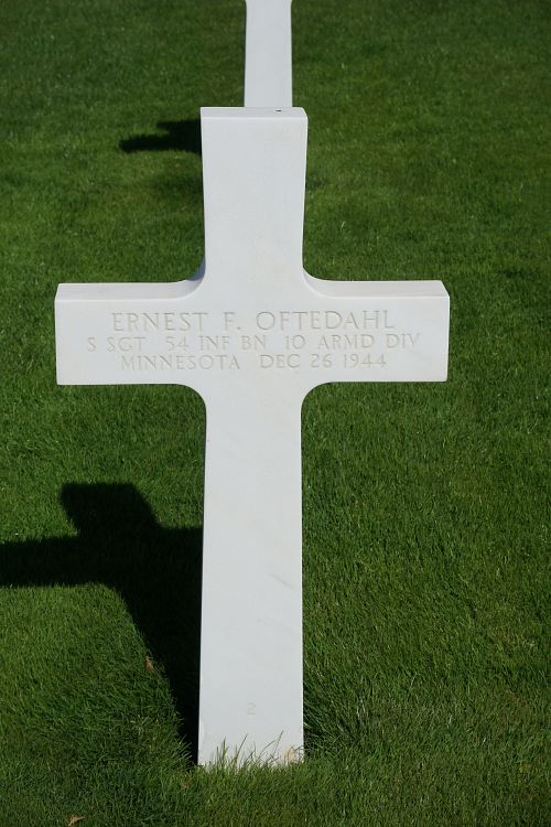 S/Sgt Ernest F. Oftedahl was first buried at the Temporary American Military Cemetery in Grand-Failly, France.Source of information: Peter Schouteten, www.abmc.gov, www.wwiimemorial.com, www.ancestry.com - Headstone and Interment Record / Larsen Kurtz Family Tree / 1940/1950 Census / U.S. WWII Draft Cards Young Men, www.10tharmored.com, www.findagrave.com