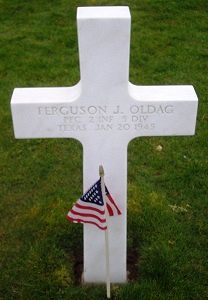 Pfc Ferguson J. Oldag enlisted in Houston, Texas on 27 January 1944.He worked on a farm before he enlisted.