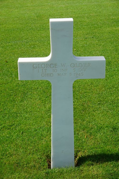 1st Lt. George W. Oliver graduated from Central High School and was a clerk with the Jeffrey Manufacturing Company.He joined the National Guard at Fort Hayes, Columbus, Ohio on 10 January 1942. He was commissioned at Fort Benning, Georgia on 17 September 1942, after which he was stationed in Alaska for eight months. He was sent overseas in July 1944.