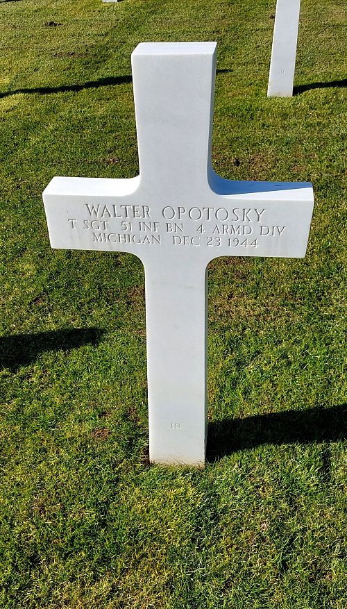 T/Sgt Walter Opotosky enlisted in Detroit, Michigan on 21 June 1941.He was initially buried at the Temporary American Military Cemetery of Grand Failly, France.