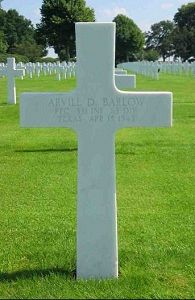 Pfc Arvill D. Barlow enlisted in Dallas, Texas on 10 February 1941 and trained at Camp Bowie, Texas. He served in France, Germany and Belgium and was wounded in France in 1944.He joined his unit from the 225nd Replacement Company on 5 June 1944 with the rank of Sergeant.