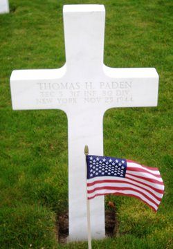 T/5 Thomas H. Paden graduated from Binghampton Central High School and was a cook when he joined the New York National Guard on 1 September 1937.He reenlisted in New York City, New York on 28 October 1943. He was sent overseas in July 1944.