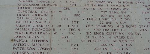 T/5 Dolwood B. Palmer was employed at the American Coal Company before he enlisted at Fort Thomas, Kentucky on 26 March 1943.Source of information: Peter Schouteten, www.abmc.gov, www.wwiimemorial.com, www.archives.gov, www.ancestry.com - U.S. WWII Draft Cards Young Men / Biggs Family Tree / 1940 Census / Defense POW/MIA Acccounting Agency, www.findagrave.com - Gma Ray