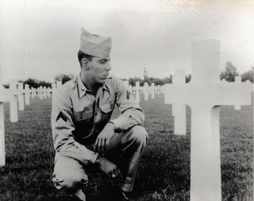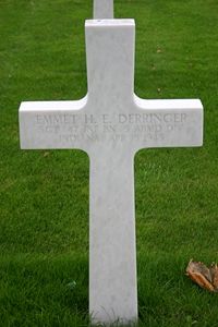 One photo shows his son, Joseph Derringer at his father's grave.Source of information: Peter Schouteten,Terry Hirsch, www.wwiimemorial.com, www.5ad.org, www.ancestry.com - Indiana Marriages / 1920 census / 1930 census / Indiana Marriages, Indiana Michigan Army Casualties 28 May 1945 Vigo County Library
