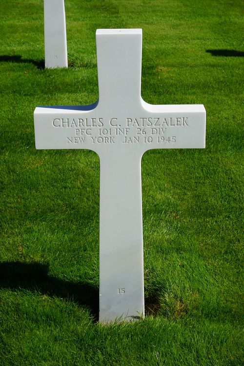Pfc Charles C. Patszalek was a driver before he enlisted in Buffalo, New York on 28 January 1941.Source of information: Peter Schouteten, www.abmc.gov, www.wwiimemorial.com, www.archives.gov – WWII Enlistment Record, www.ancestry.com - Headstone and Interment Record / U.S. WWII Draft Cards Young Men / Lawson Family Tree / 1940 Census, www.fold3.com – 26th Infantry Division