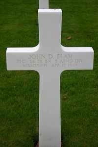 On 5 June 1946, a comrade, Arnold Rankela, wrote a letter to Pfc Elam's mother, telling her what happened on that tragic day:“We were moving from one place to another not actually fighting so it was just another ‘road march’ when the accident occurred. He was the assistant driver and bowgunner in one of the tanks. While moving, another tank came down the road and the road not any being too wide for two tanks so they had to drive very close to the trees lined on the sides of the road. A large low hanging branch hit the top of the tank and spun it around and the large gun on the tank hit John on the side of the head. It just so happened that he was standing up enjoying the sights instead of sitting so his head and shoulders were out of the hatch. If he had been down as he generally is when moving the gun would not had hit him. It was just a pure accident. We got him out in a hurry but he was out so he didn’t say a word. The doctors worked on him and they rushed him to a field hospital but we heard the following day he had died without coming-to.”