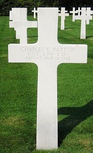 S/Sgt Charles E. Paxton graduated from Liberty Memorial High School in 1938 and attended the University of Kansas. He was employed as a librarian.He joined in the National Guard on 23 December 1940.