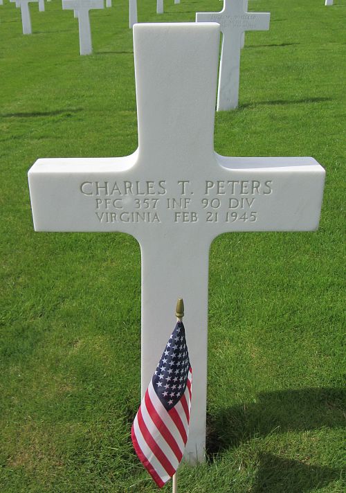 Pfc Charles T. Peters worked on a farm before he enlisted at Fort George G. Meade, Maryland on 13 May 1944.Source of information: Peter Schouteten, www.abmc.gov, www.wwiimemorial.com, www.archives.gov – WWII Enlistment Record, www.ancestry.com - Headstone and Interment Record / Oh Those Dollys of WV / 1940 Census