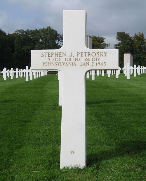 Source of information: Peter Schouteten, www.abmc.gov, www.wwiimemorial.com, www.archives.gov – WWII Enlistment Record, www.ancestry.com - Headstone and Interment Record / Pennsylvania Veteran Compensation Application Files WWII, www.findagrave.com, www.fold3.com – 26th Infantry Division, www.newspapers.com – The Plain Speaker 18 January 1945