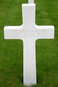 Leighton Hollon worked for the State Highway Department.He enlisted on 23 July 1942 and trained at Southwark Station, Pennsylvania, Camp Davis, North Carolina, Camp Haan, California, Camp Howze, Taxeas and Fort Meade, Maryland from where he was sent overseas on 22 March 1945.
