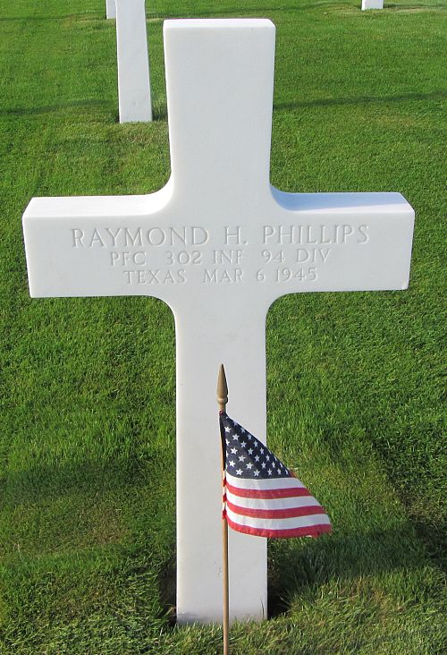 Pfc Raymond H. Phillips enlisted on 28 July 1944.He is remembered at Pleasant Hill Community Cemetery in Nacogdoches, Texas.