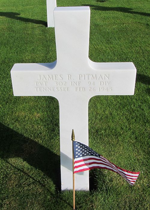 Pvt James R. Pitman worked on a farm before he enlisted at Fort Oglethorpe, Georgia on 10 August 1944.Source of information: Peter Schouteten, www.abmc.gov, www.wwiimemorial.com, www.archives.gov – WWII Enlistment Record, www.ancestry.com - Headstone and Interment Record / 1940 Census, http://www.94thinfdiv.com