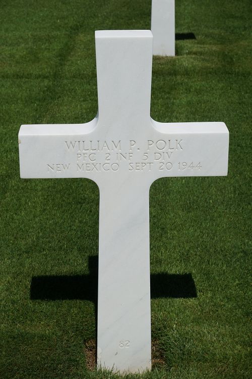 Pfc William P. Polk aworked on a ranch.He enlisted at Fort Bliss, El Paso, Texas on 21 March 1941. He was sent overseas in August 1944 and sent to France on 7 September 1944.