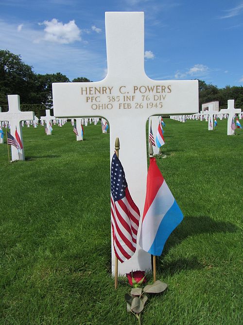 Pfc Henry C. Powers attended high school for three years and was a police officer before he enlisted at Fort Benjamin Harrison, Indiana on 6 May 1944.Source of information: André Koch, www.abmc.gov, www.wwiimemorial.com, www.archives.gov - WWII Enlistment Record, www.ancestry.com - 1920/1930/1940 Census / Headstone and Interment Record / Kentucky Birth Index, www.newspapers.com - The Courier-Journal - 3 April 1945