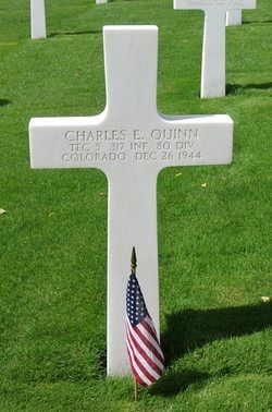 T/5 Charles E. Quinn attended high school for two years and was an employer of the Gates Rubber Co. before he enlisted in Denver, Colorado on 29 November 1943.Source of information: Leo Minne, www.abmc.gov, www.wwiimemorial.com, www.ancestry.com – 1930/1940 Census / Headstone and Interment Record / U.S. Draft Cards Young Men, www.80thdivision.com