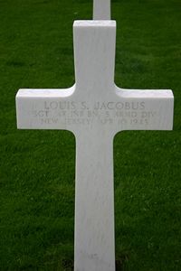 Louis S. Jacobus attended Rockaway High School where he played football, after which he was employed by the Dover Tank and Stack Co. He also worked for Dover Boiler Plate and Fabricators.He enlisted on 24 April 1943 at Newark in New Jersey and trained at Camp Campbell, Kentucky. He was overseas for about a year at the time of his death.